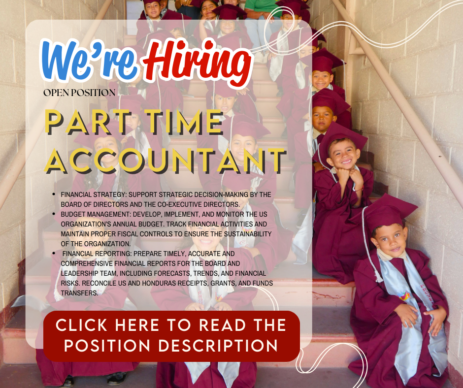 Jubilee Centers International, a non-profit organization operating a Christian school in Tegucigalpa, Honduras, is seeking a part-time Accountant position that will work in Grand Rapids Metro Area to energetically support our education and church ministry.